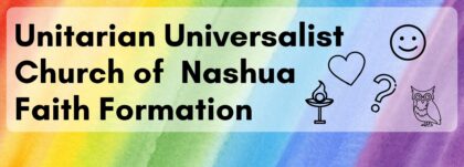 Families that register have access to monthly UU Nashua Family Faith Formation padlet webpages, which include links to resources and stories shared each month, as well as take-home conversation prompts.